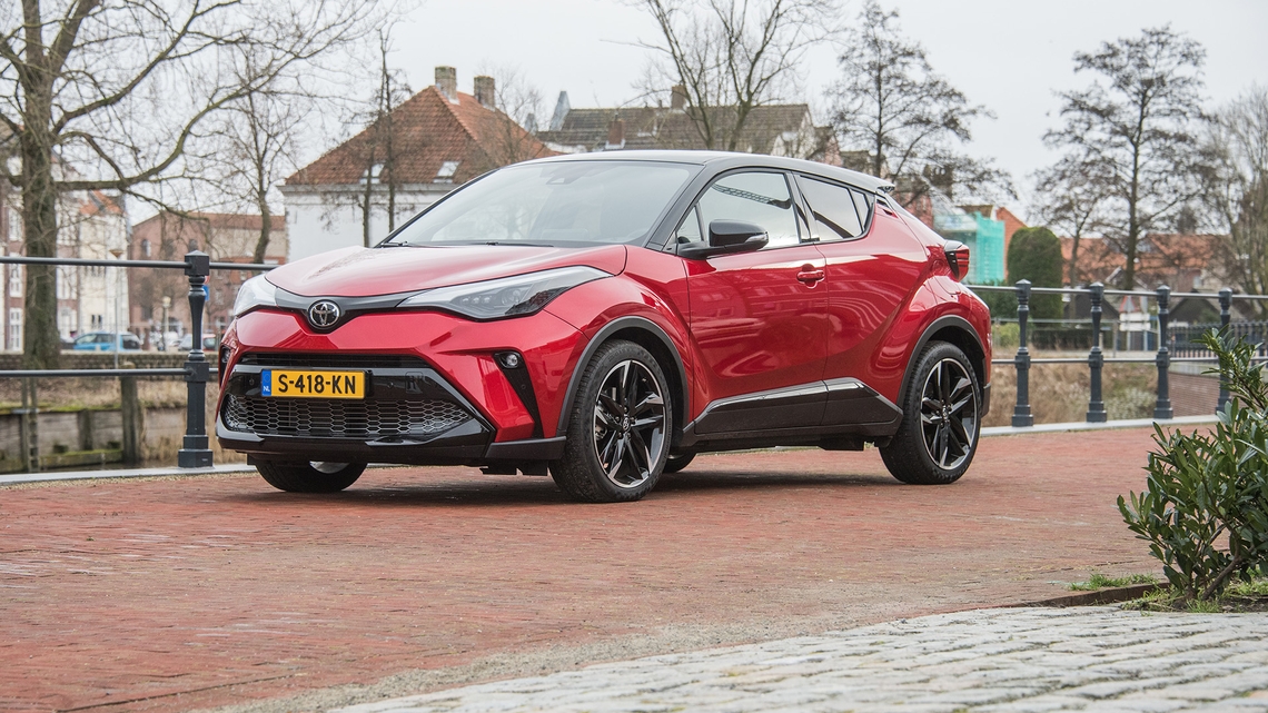 Toyota-C-HR-exterieur-links-voor-rood-rijdend